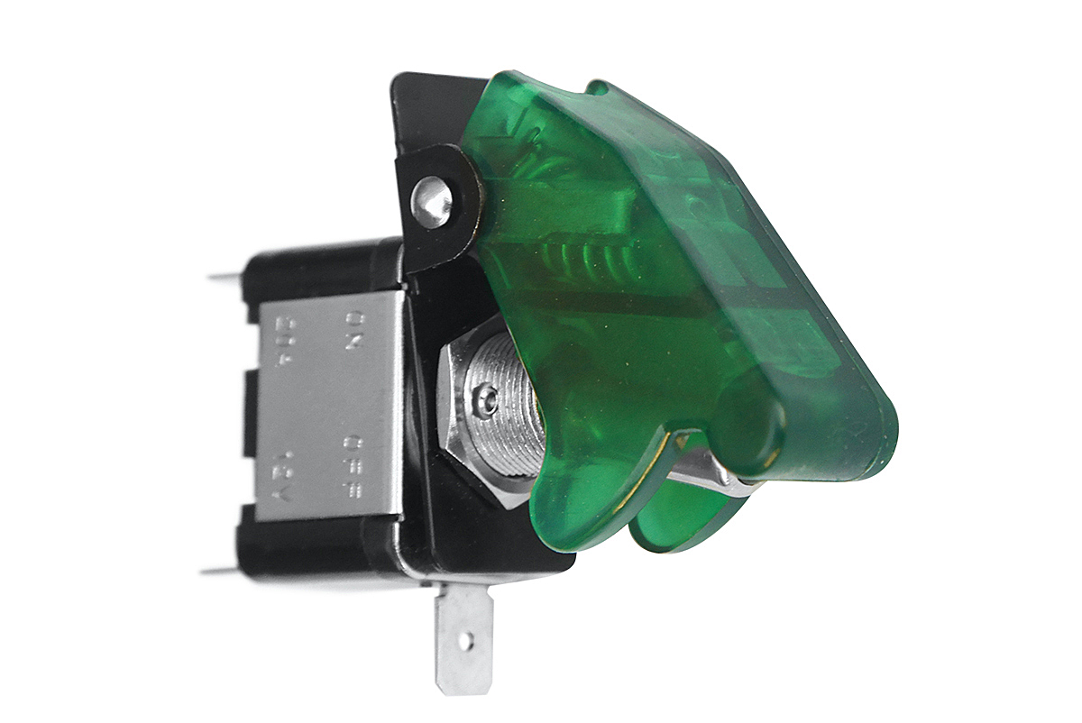 Тумблер имеет функцию подсветки. Для предотвращения произвольного переключения тумблера применяются защитные крышки, которые изготавливаются в различной цветовой гамме. Цвета крышки – зеленый.
