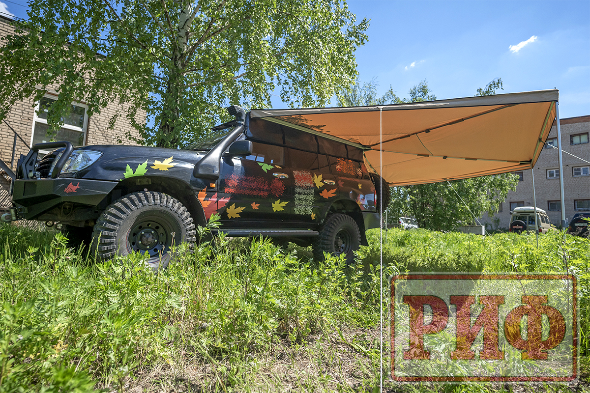 Маркиза автомобильная РИФ веерная 2.5х3,0 м (левая): описание, фото, видео, характеристики, условия доставки и покупки оптом и в розницу, отзывы покупателей. Большой каталог Маркизы на официальном сайте интернет-магазина для внедорожников Автовентури