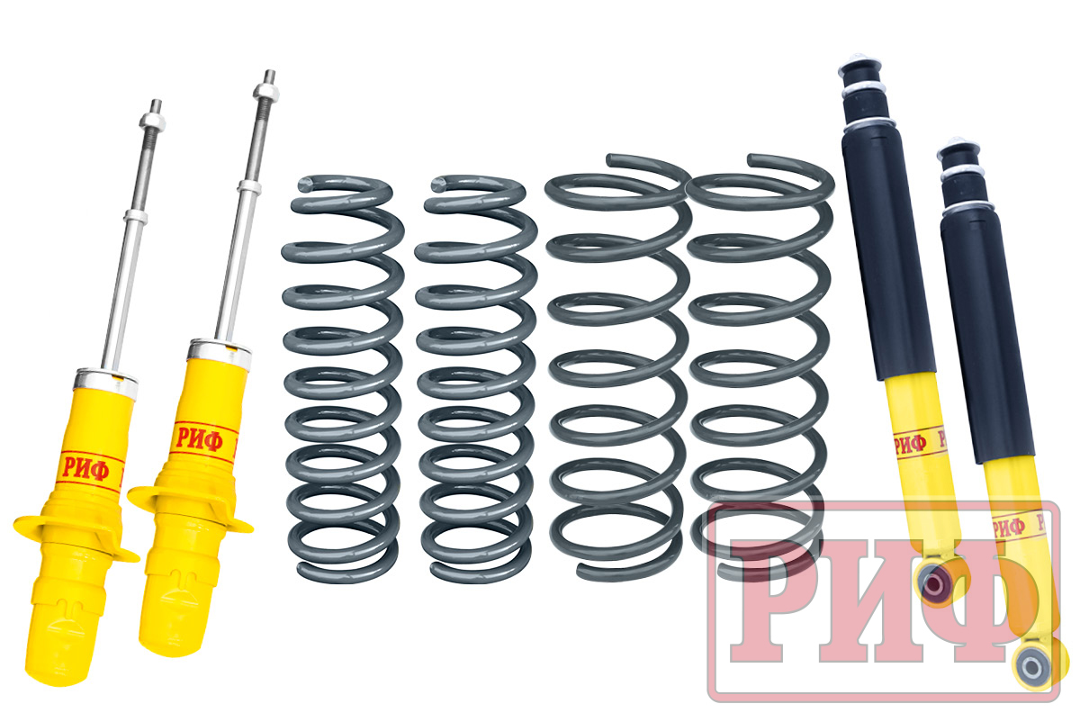Все компоненты лифт-комплектов РИФ разработаны специально для эксплуатации внедорожника в тяжелых условиях на различных дорожных покрытиях. Амортизаторы с технологией R-AIR и пружины РИФ не только компенсируют вес установленного на внедорожнике дополнительного оборудования (бамперов, порогов, дополнительных топливных баков, лебедок и прочего), но также существенно повышают грузоподъемность автомобиля.