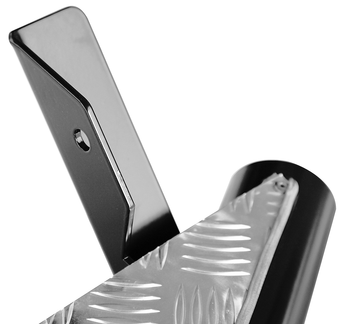 Забраться в салон внедорожника на больших колесах благодаря порогам РИФ легко и просто, а прекрасно зарекомендовавшая себя накладка на порог из рифленого алюминия отлично держит любую подошву.