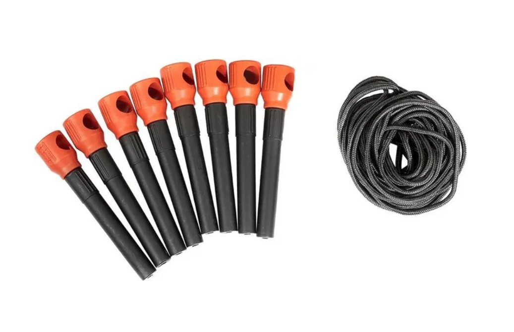 - В комплект входят 8 ввертышей и прочные оттяжки для более надежной фиксации палатки ко льду.